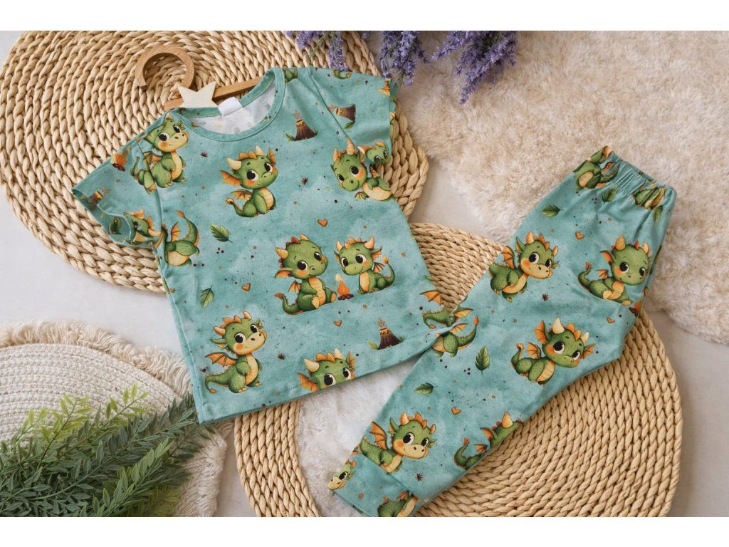 Chlapčenské pyžamko dino - kombinácia krátky rukáv dlhé gate a k tomu obľúbený vzor dráčik je ideálne na dobrú noc pre malých fešákov