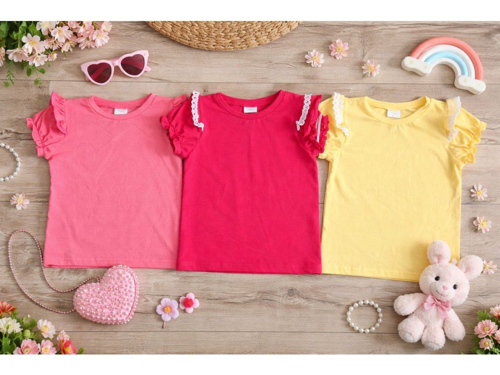 Nádherné žiarivé tričenká s dokonale prepracovanými rukávikmi očaria každú mladú slečnu :)